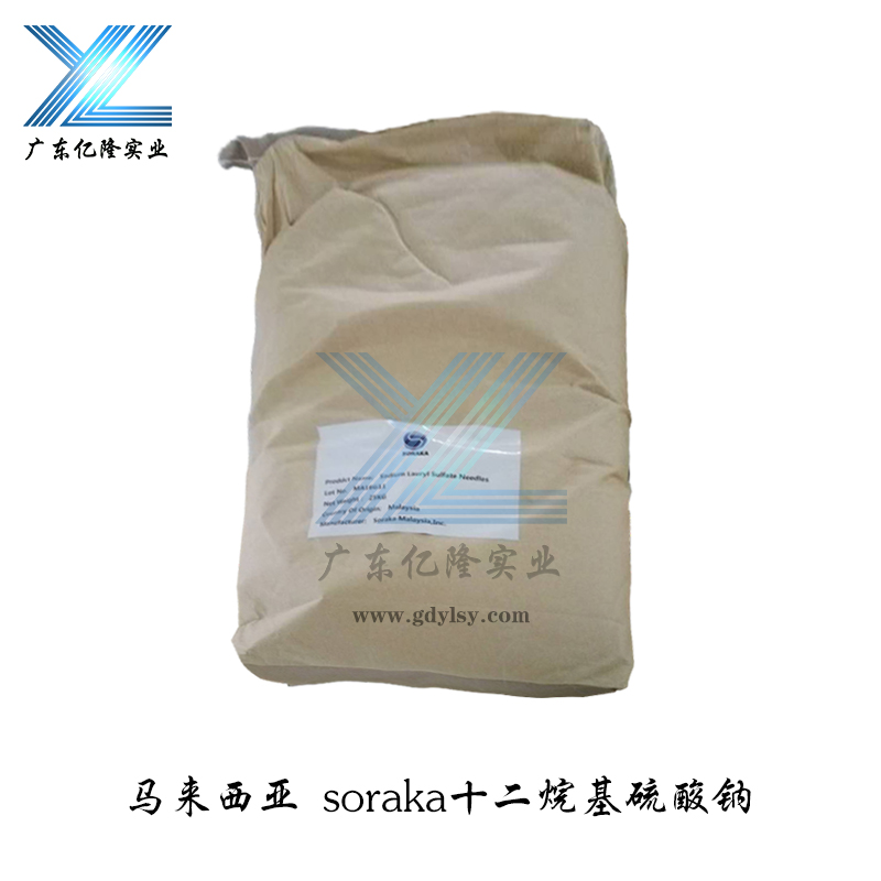 十二烷基硫酸钠,白色或淡黄色粉状,溶于水,对碱和硬水不敏感。具有去污、乳化和优异的发泡力。是一种对人体微毒的阴离子表面活性剂。其生物降解度>90%。用途:用作乳化剂、灭火剂、发泡剂及纺织助剂。也用作牙膏和膏状、粉状、洗发香波的发泡剂。