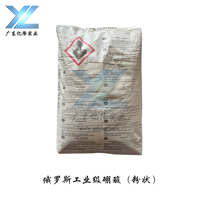 硼酸,为白色粉末状结晶或三斜轴面鳞片状光泽结晶,有滑腻手感,无臭味。溶于水、酒精、甘油、醚类及香精油中,水溶液呈弱酸性。大量用于玻璃(光学玻璃、耐酸玻璃、耐热玻璃、绝缘材料用玻璃纤维)工业,可以改善玻璃制品的耐热、透明性能,提高机械强度,缩短熔融时间。